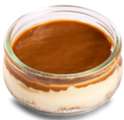 Mousse cheesecake sopra alla tradizionale base di biscotti digestive decorata con topping al caramello salato