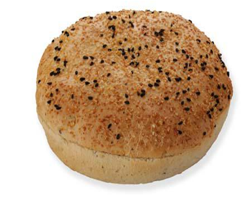 Panino morbido di farina di frumento con un mix di spezie, rifinito con semola di patate e cumino nero, pretagliato