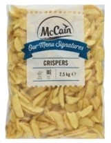 Patate salate dal taglio ondulato a āVā con buccia e rivestimento croccante. Prefritte e surgelate.